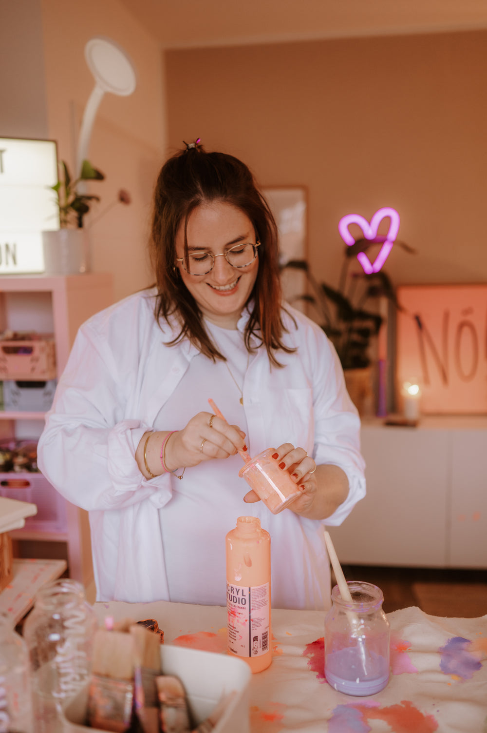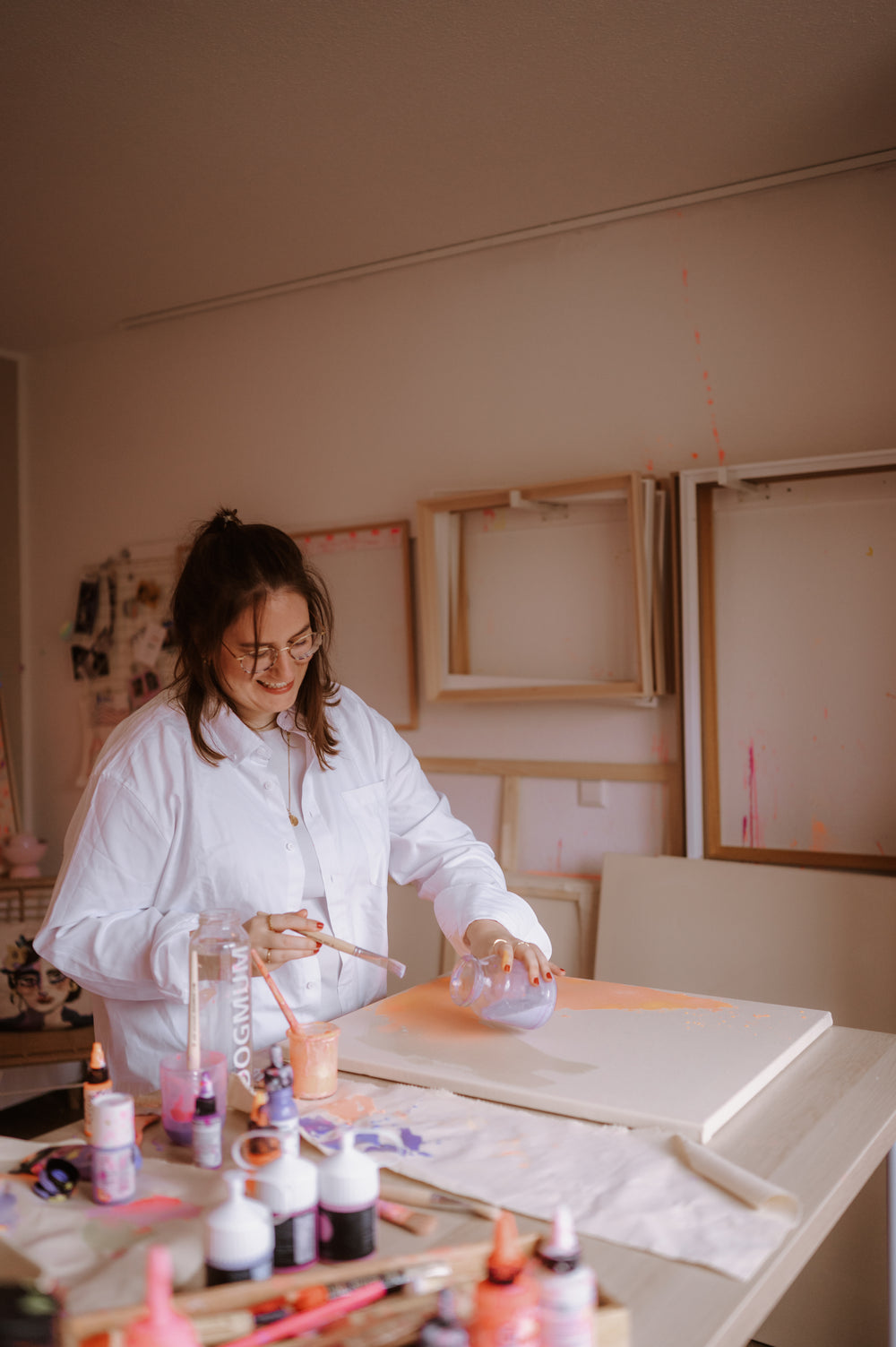 Am liebsten male ich große, bunte, verträumte Bilder. Hin und wieder kommt aber auch das ein oder andere Nö! aus mir heraus, direkt auf die Leinwand.