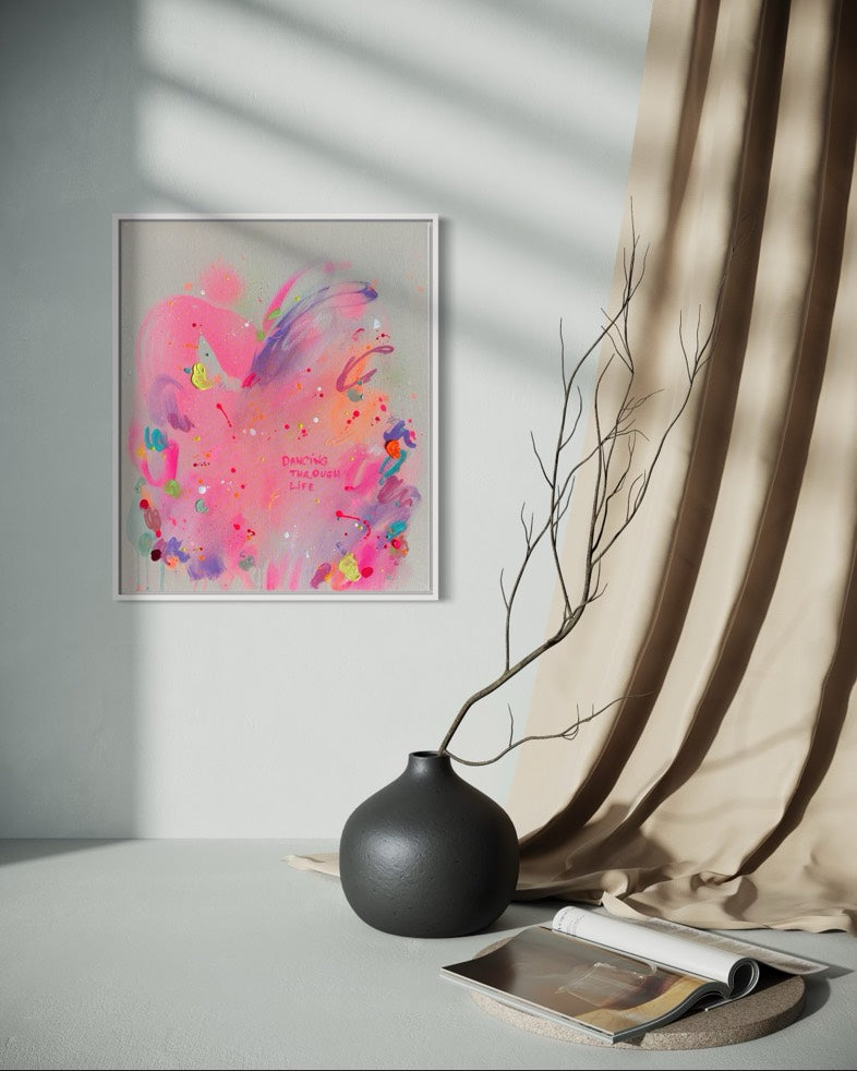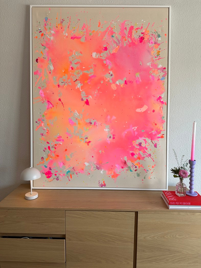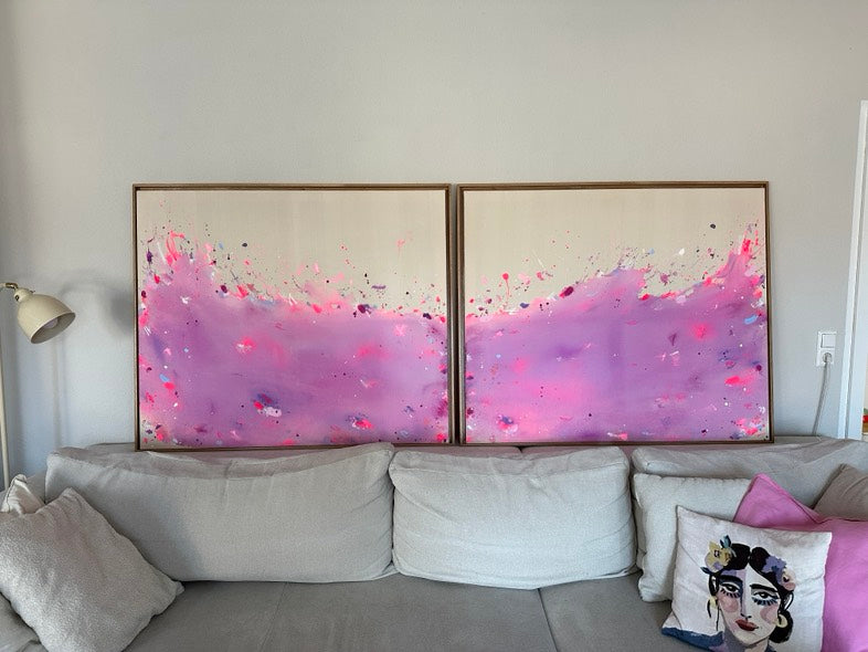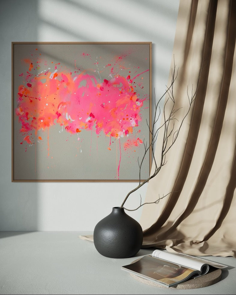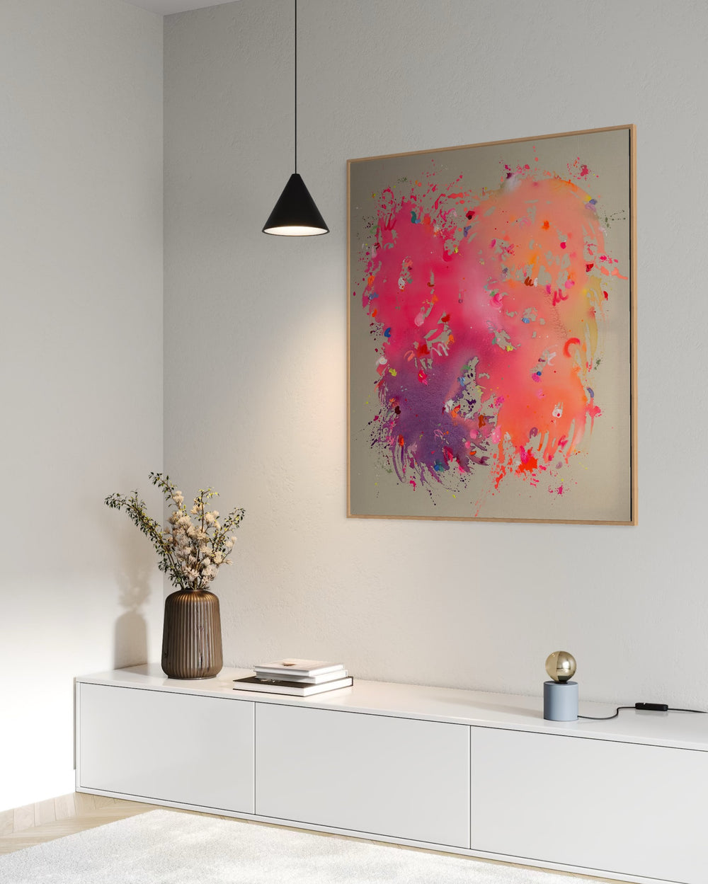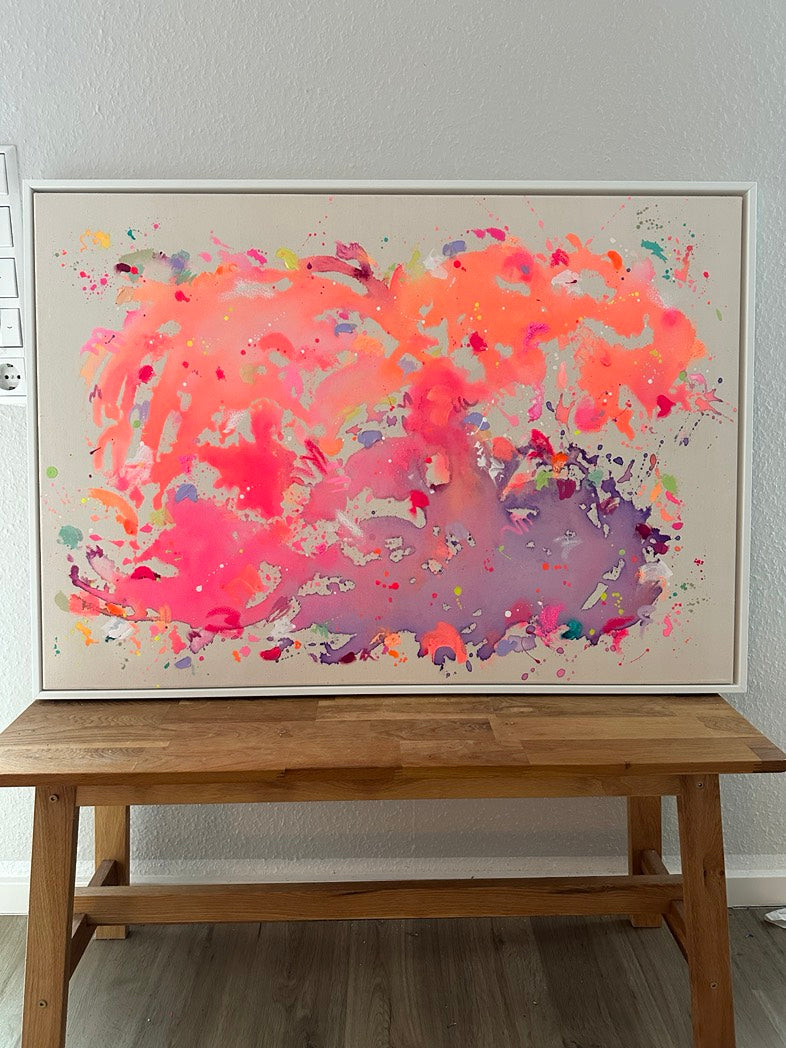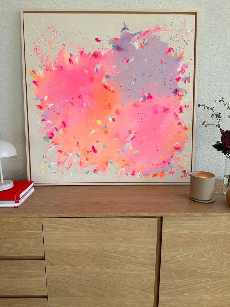 Knalliges Pink, leuchtendes Orange, warmes Violett – die Werke der Serie HAPPY feiern das Leben in seiner ganzen bunten und wilden Art. Jedes Bild ist ein Gefühlsausbruch auf Leinwand – spontan, lebendig, mutig.Ein liebevoller Reminder: Freude ist ein Gefühl, das Raum braucht. Und das darf laut, wild und pink sein.