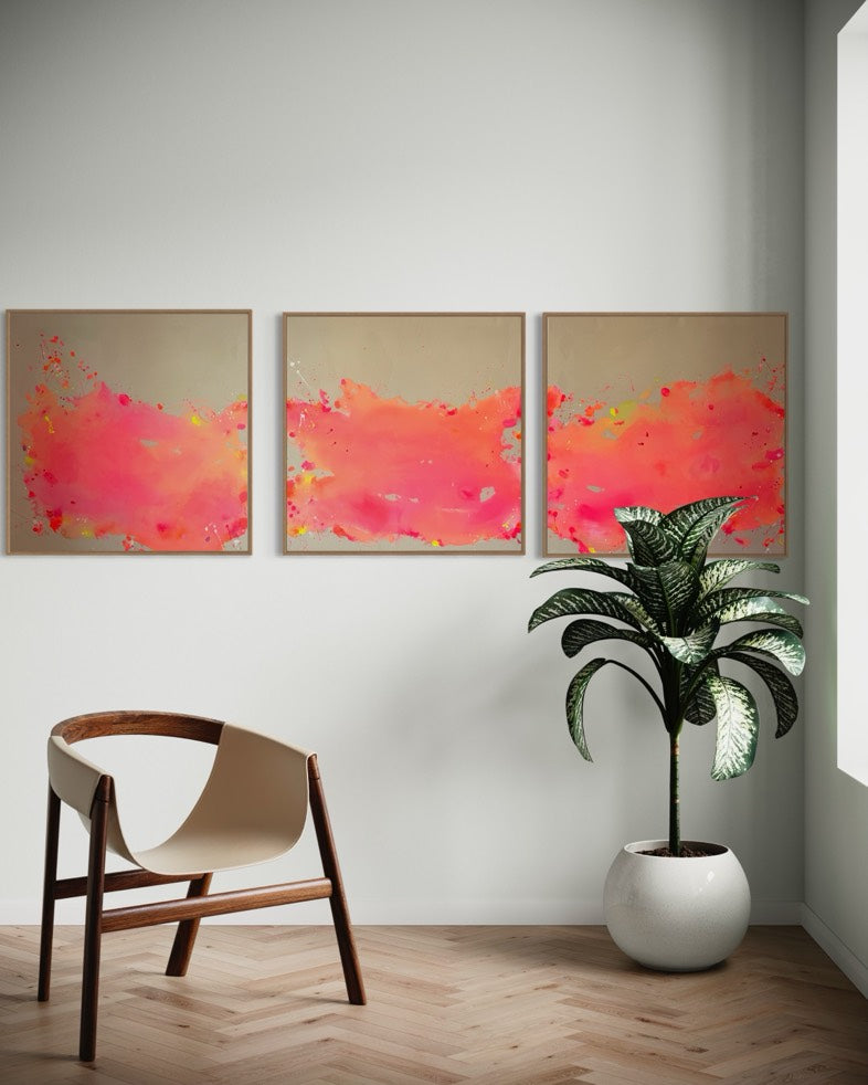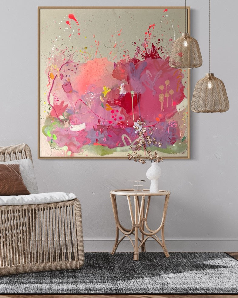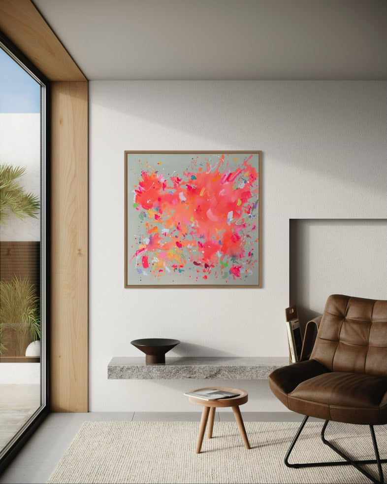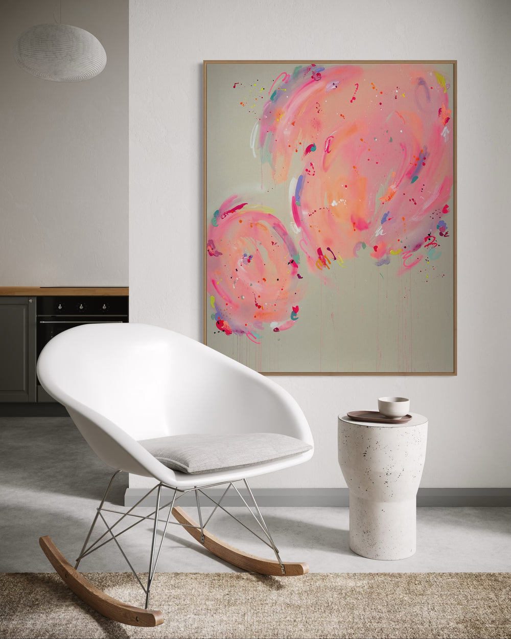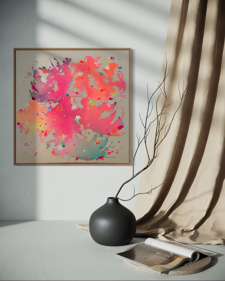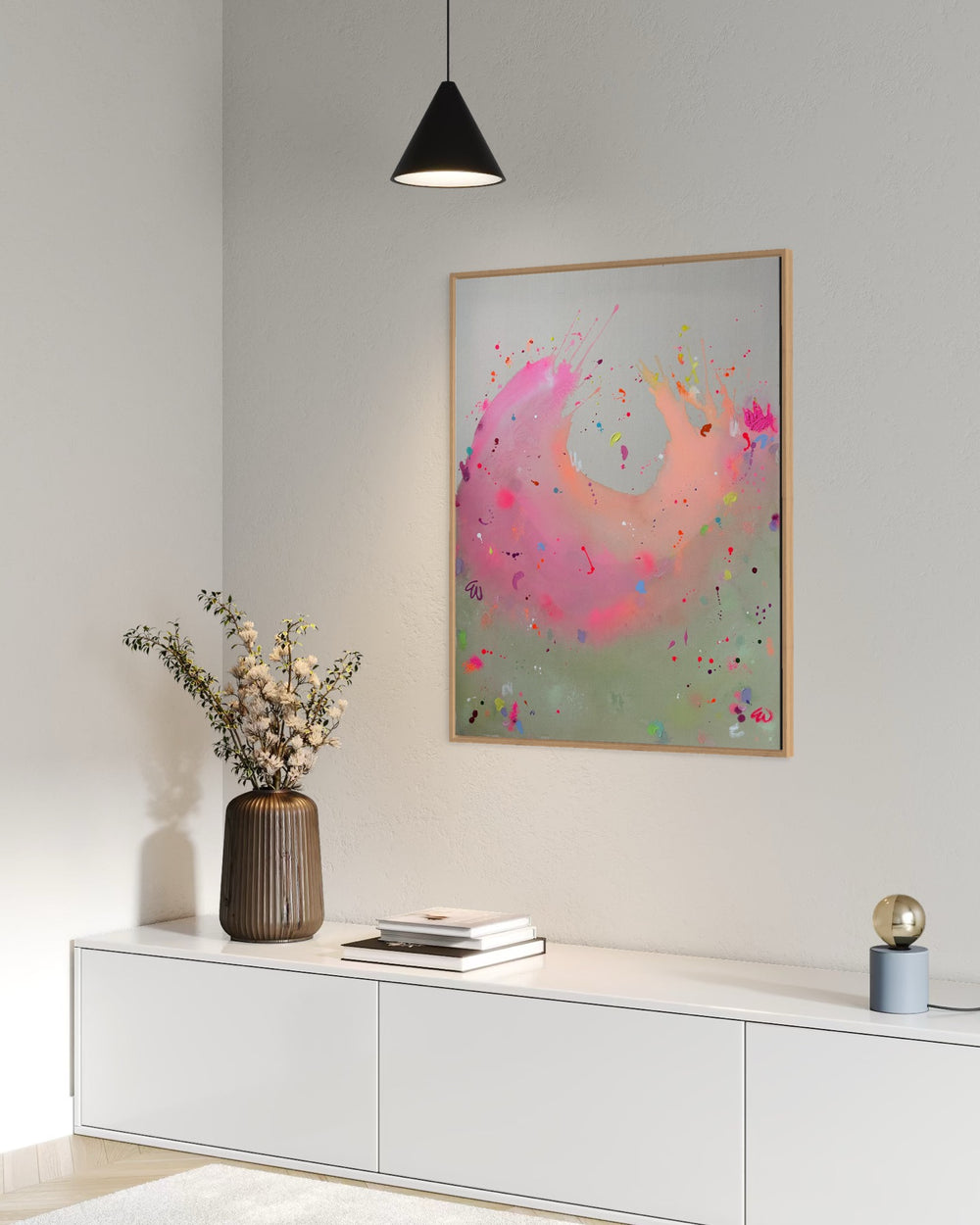 Knalliges Pink, leuchtendes Orange, warmes Violett – die Werke der Serie HAPPY feiern das Leben in seiner ganzen bunten und wilden Art. Jedes Bild ist ein Gefühlsausbruch auf Leinwand – spontan, lebendig, mutig.Ein liebevoller Reminder: Freude ist ein Gefühl, das Raum braucht. Und das darf laut, wild und pink sein.