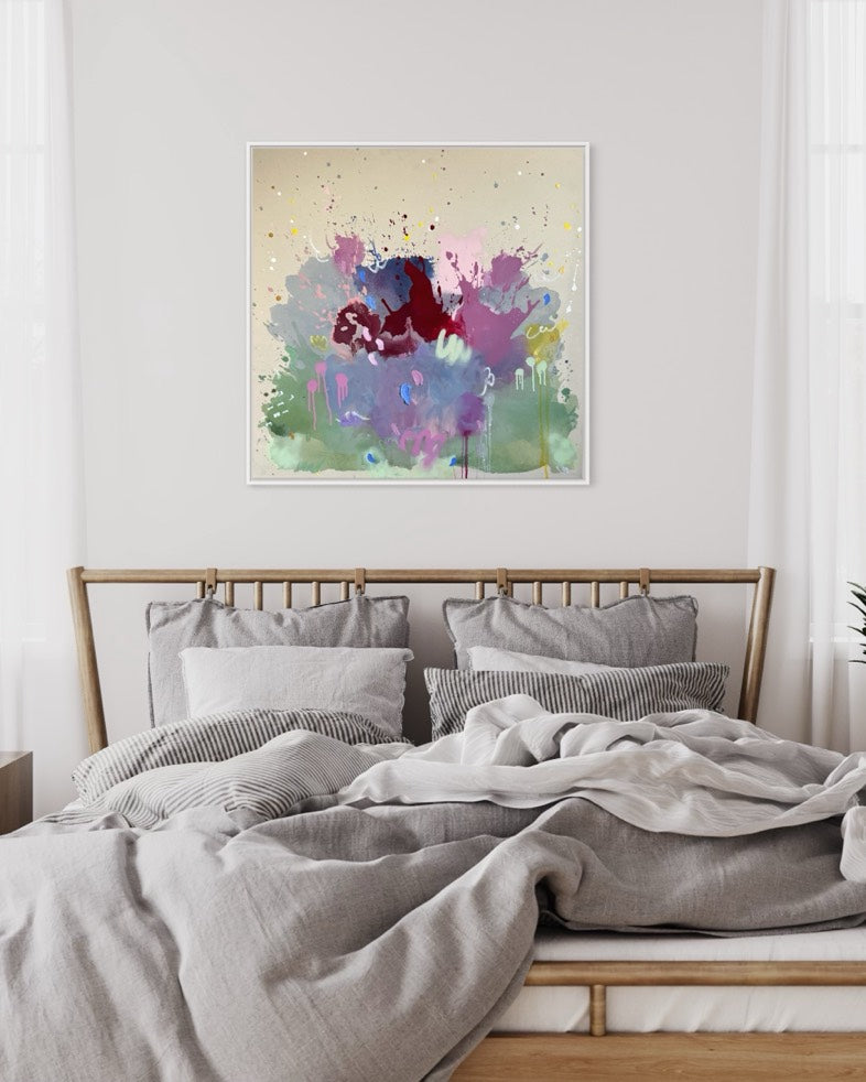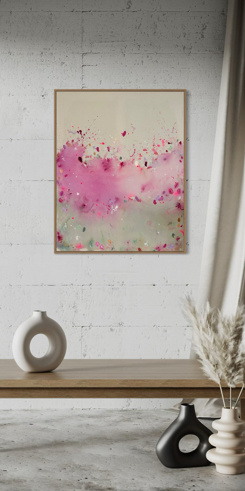 Als Kind wollte ich Floristin werden – heute male ich mir meine eigenen Blumensträuße auf Leinwand. Die Serie Blumenwiese ist meine Art, die Natur und ihre Farben zu feiern.Jedes Bild ist inspiriert von einer Jahreszeit – mal frühlingshaft leicht, mal satt und sommerlich, mal herbstlich warm. Mit fließenden Farben, Klecksen und kleinen Details, die an Blüten erinnern, entsteht ein ganz eigenes Blumenmeer.